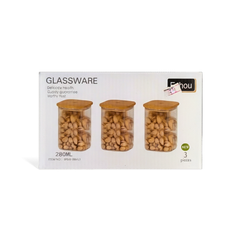 Echou Premium Glass Storage Jars – 3-Piece Set with Bamboo Lids & Tray