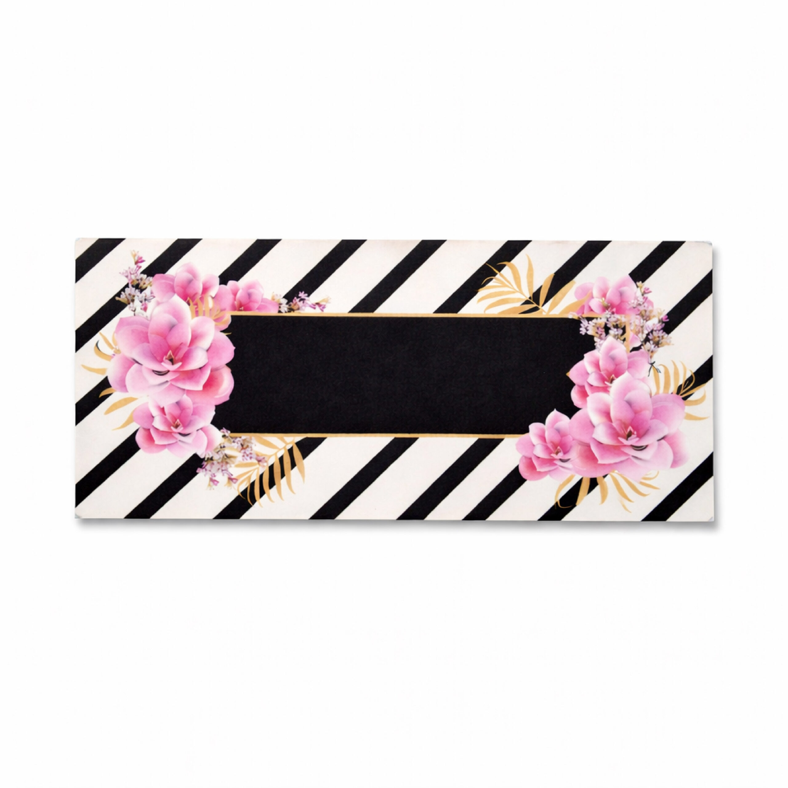 Enhance your invitations and gifting experience with this luxurious black striped floral envelope, crafted from high-quality sound card material for a rich and durable feel. The elegant diagonal black stripes combined with soft pink blossoms and golden foliage create a sophisticated and modern look, making it perfect for weddings, festive gifting, corporate invitations, and special occasions.
