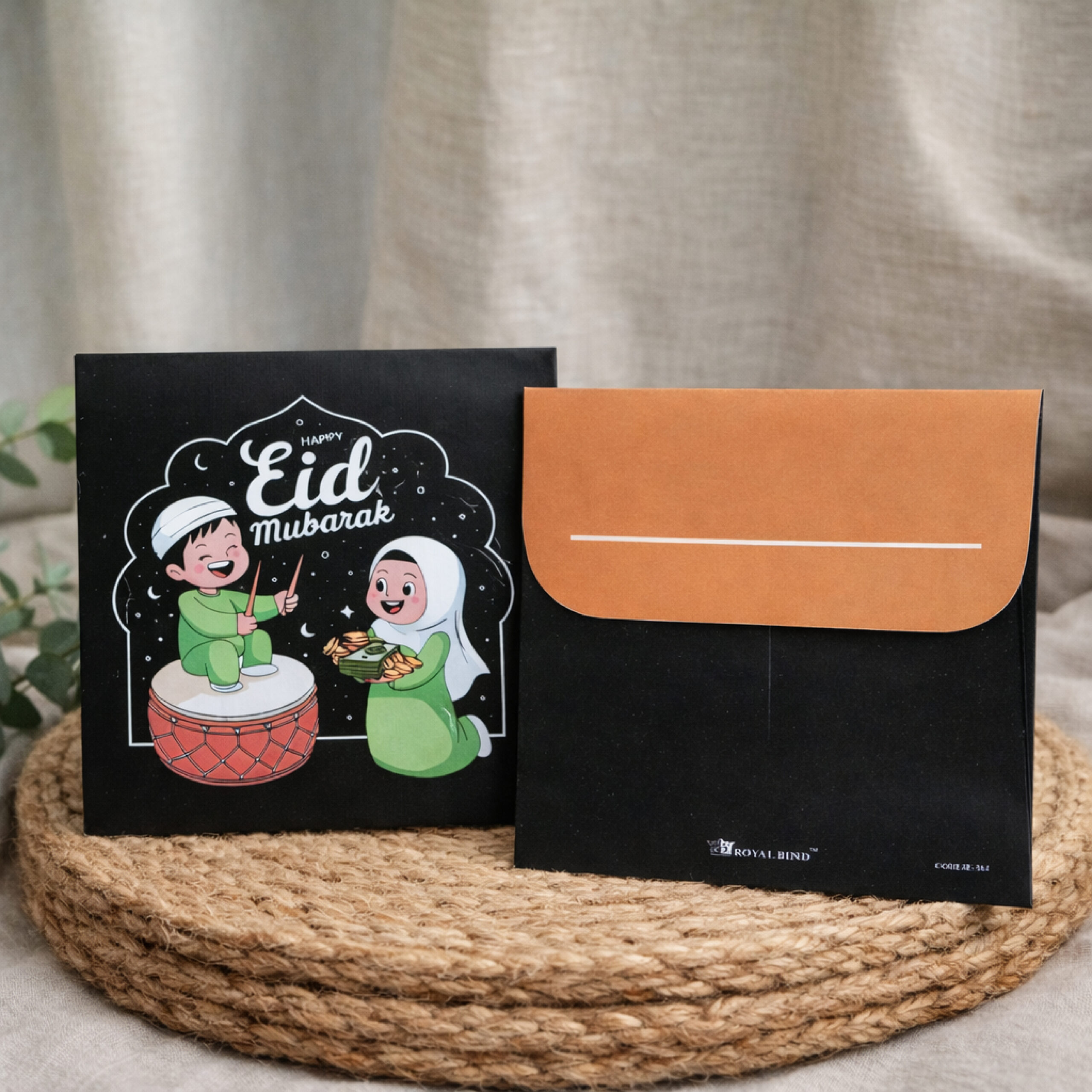 Celebrate the joy of Eid with this heart-warming kids’ Islamic wall art featuring a cheerful boy playing the traditional drum and a little girl holding Eidi. Designed with a beautiful night sky and crescent theme, this artwork brings happiness, innocence, and festive vibes into your home.