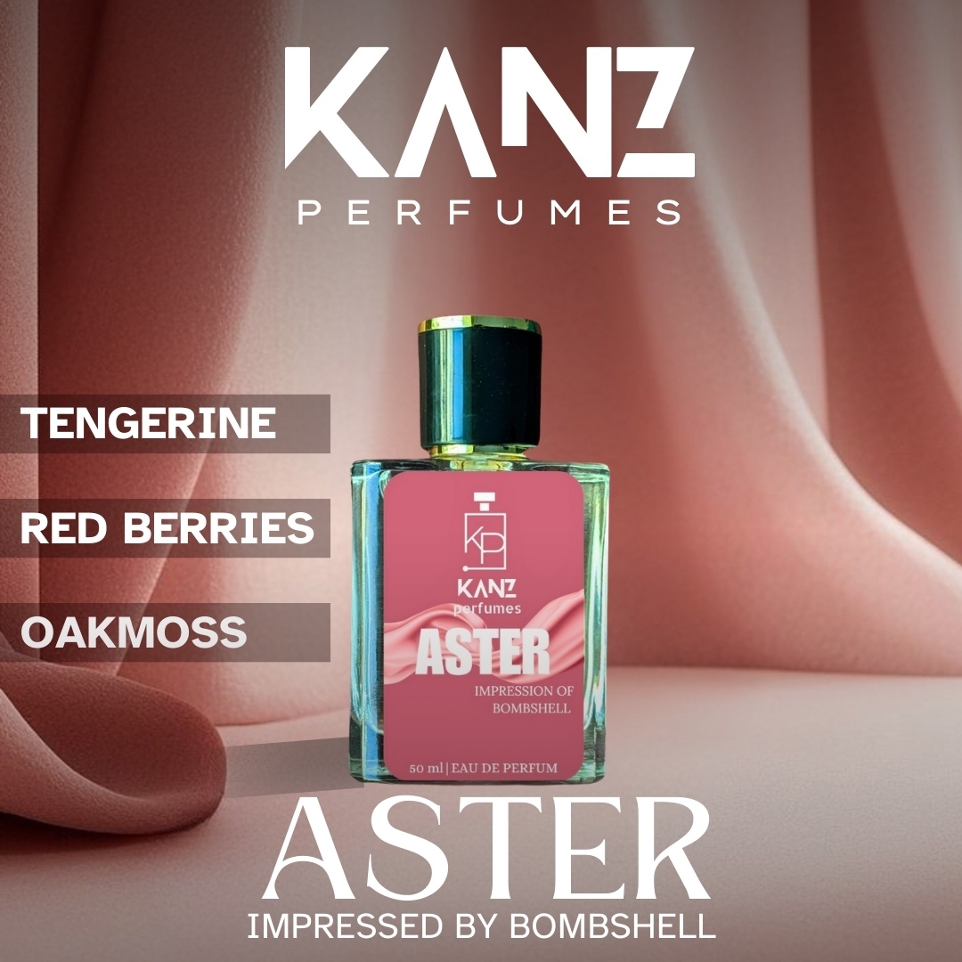 🌸 Aster by KANZ Perfumes – A vibrant and feminine fragrance blending juicy tangerine, sweet red berries, and earthy oakmoss. Playful yet elegant, perfect for women who love to shine with confidence.